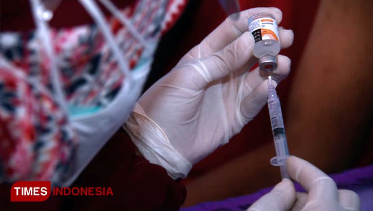 TIMES Purworejo/Salah satu tenaga kesehatan saat mengisi dosis vaksin untuk disuntikkan. (FOTO: Adhitya Hendra/TIMES Indonesia)