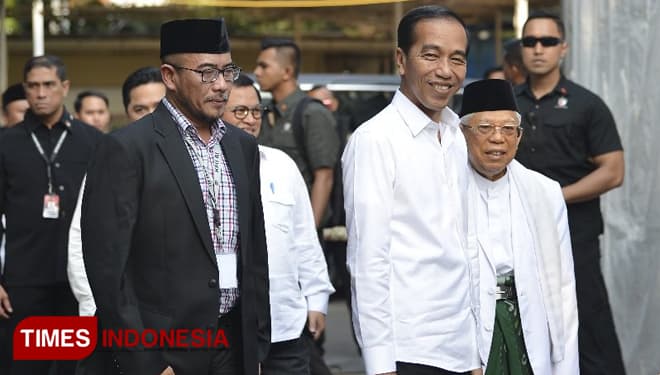 TIMES Purworejo/Presiden terpilih, Jokowi, saat tiba di Gedung KPU RI, Minggu (30/06/2019). (FOTO: Hasbullah/TIMES Indonesia).